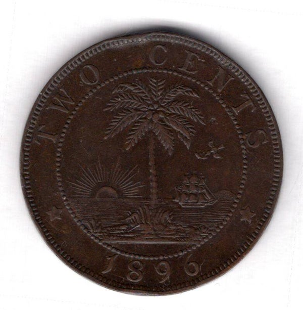 Liberia, 2 Cents, 1896. Rim dent on reverse. DY18381