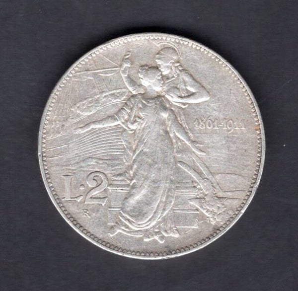 Italy. 2 Lire 1861-1911. Cleaned. DY18408