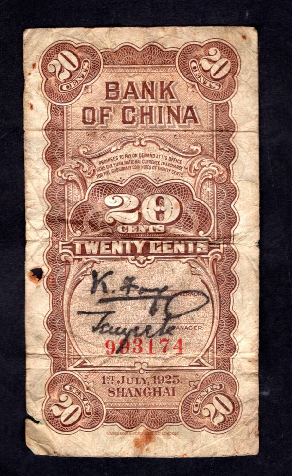China, Bank of China, 20 Cents Shanghai 1925 (WPM 64).