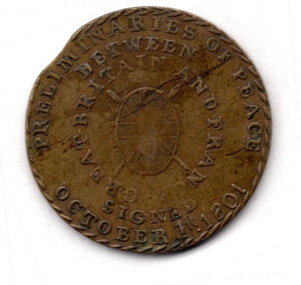 Preliminaries of peace between Britain & France brass token 1801. DY18505