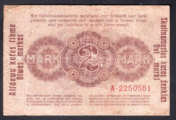 Germany. Occupation Lithuania 2 Mark 1918. A.2250561. Fine. DY19182