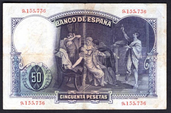Spain. 50 Pesetas 1931. 9,155,736. F-VF. DY19331