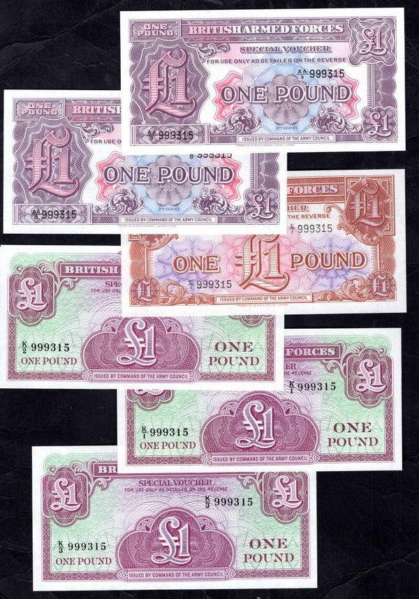 GB Military, British Armed Forces, 11 notes matching numbers 999315. Mainly UNC. DY19437