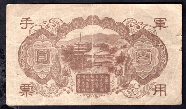 China. Japanese Puppet Bank 100 Yen (1945). Block One.