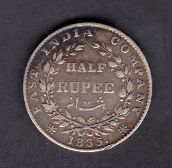 East India Company. 1/2 Rupee 1835, Incuse F.