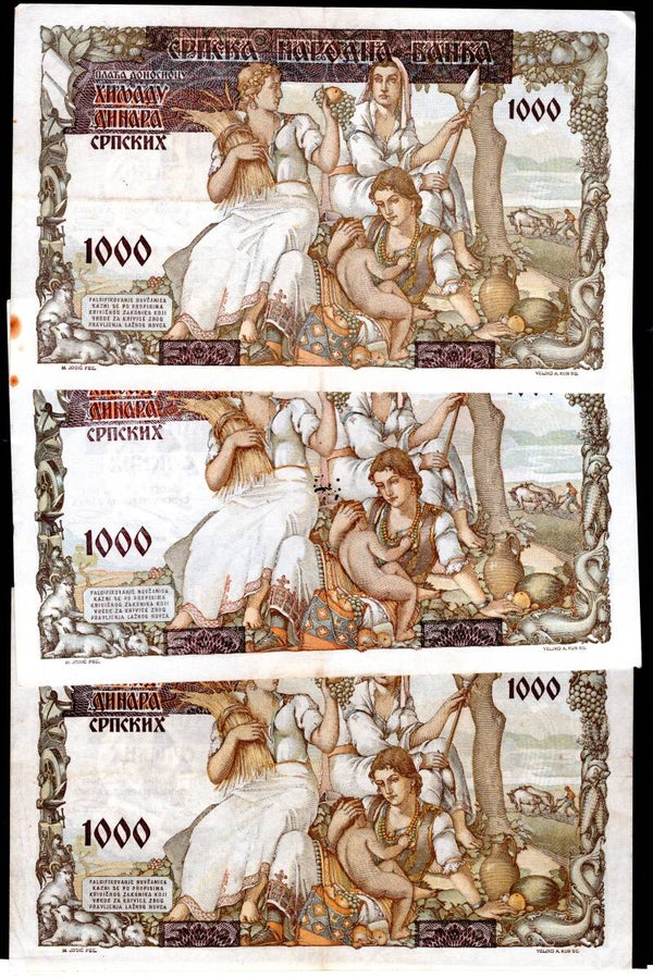 Serbia, 1,000 Dinara, 1941, 1 x spotting, pressed, VF-EF.