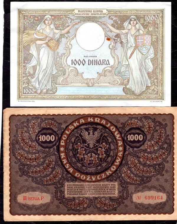 Poland, 1,000 Marek 1919, minor edge nicks, approx 7mm tear top margin Crisp NVF.