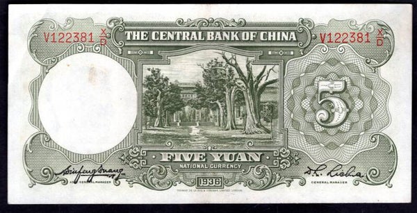 Central Bank of China. Five Yuan 1936. V122381. Crisp VF.