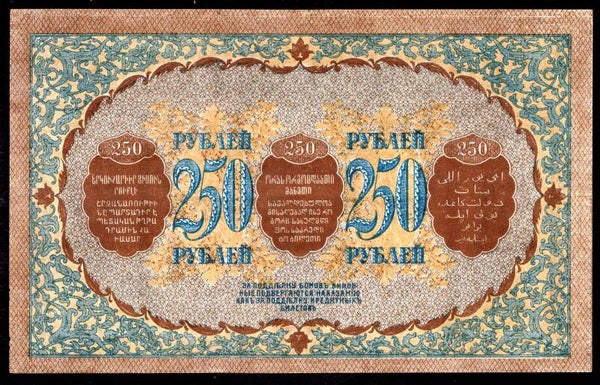 Russia. Transcaucasia 250 Roubles 1918 (WPM S607). 5009 VF-EF. DY20204