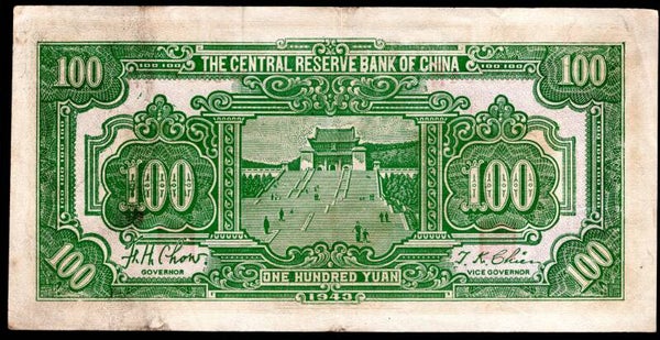 China. Central Reserve Bank 100 Yuan 1943 (WPM J21a). W450764C/H. VF. DY20214