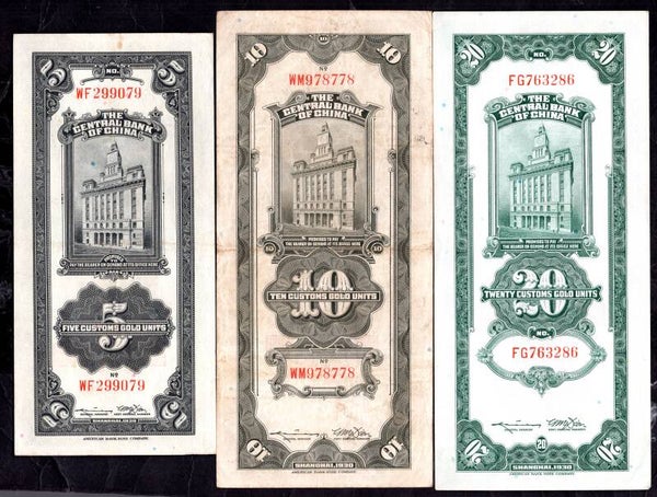 China. Central Bank. 5, 10, 20, 50 & 100 Customs Gold Units 1930. DY20249