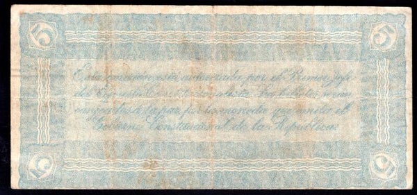 Mexico. Estado Durango. Five Pesos Jan 1914 (WPM S732a) D 19099 F-VF. DY20152