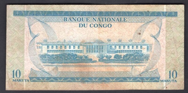 Congo. 10 Makuta 1-9-1968 (WPM 9) EA858022 GF. DY20344