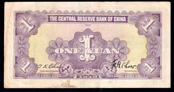 China. Central Reserve Bank. Yuan 1940 (WPM J9a) JX432443B VF. DY20332