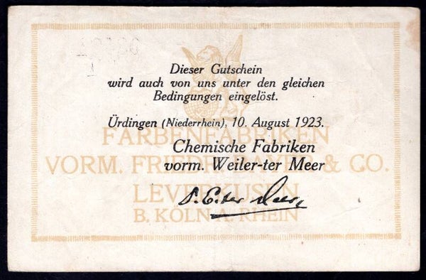 Germany. Bayer & Co. One Million Mark 1-10-1923 A08470 Crisp VF. DY20433
