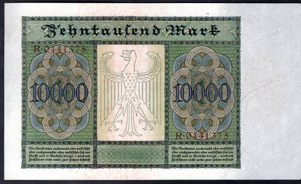 Germany. large size 10,000 Mark 19-1-1922 (WPM 70) R.0441375 Slight spotting, light denting and creasing. AU. DY20202