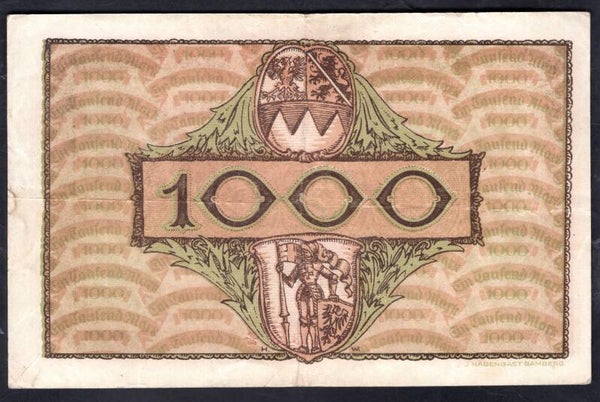 Germany. Bamberg. 1,000 Mark October 1922 No 21922 NVF. DY20374
