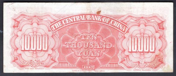 China. 10,000 Yuan 1947 (WPM 317) 3U 627609 F-VF. DY20181