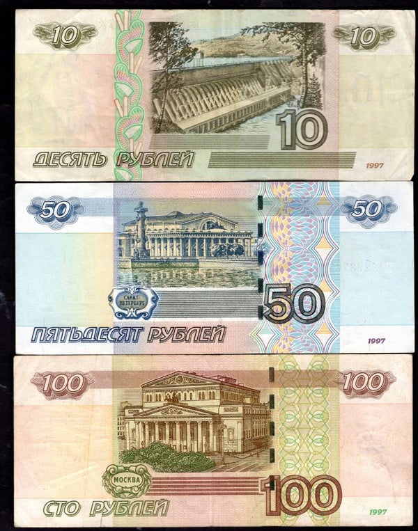 Russia. 10,50 & 100 Roubles 1997. DY20414