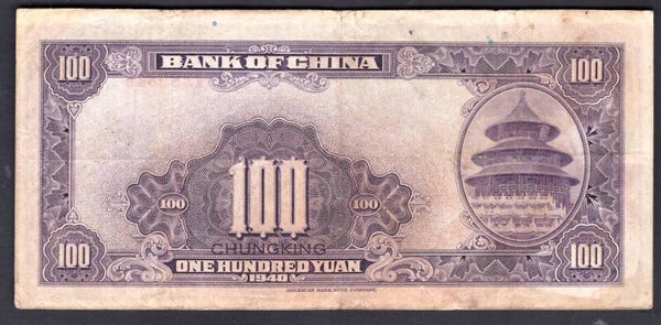 China. Bank of China. Chungking. 100 Yuan 1940 V889848