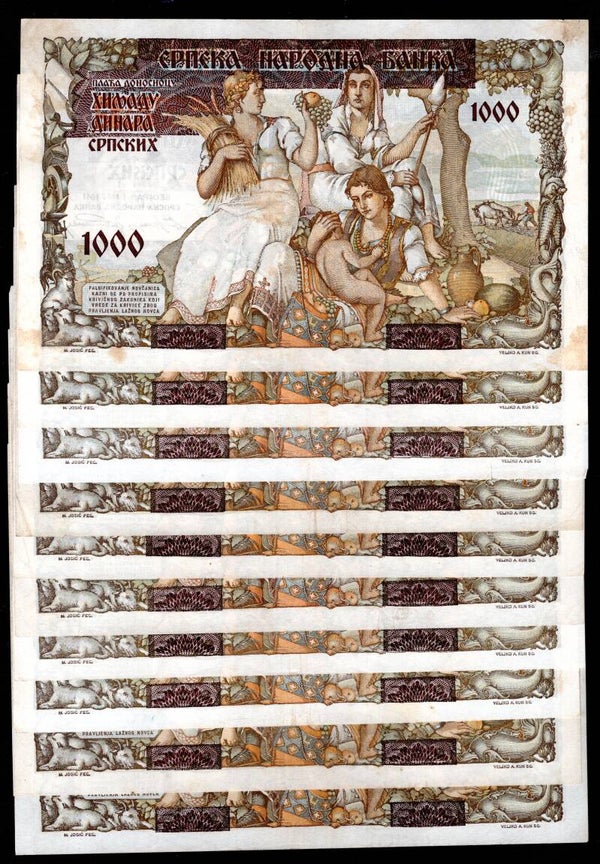 One note has a 1mm edge nick, one has a 5mm edge nick bottom margin, 01099062 has approx; 1cm slit centre right of note.