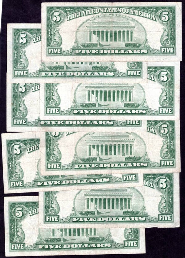 USA. Red Seal. 8 x $5 series 1963. VG to Fine. DY20872