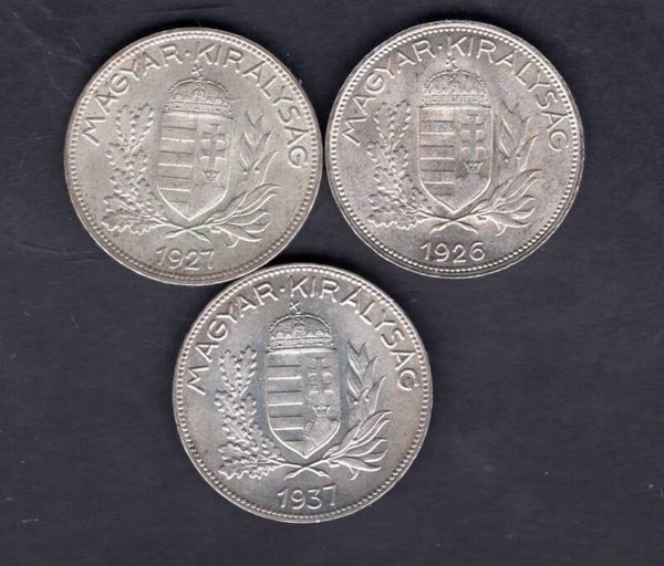 Hungary. 3 x One Pengo 1926, 1927 & 1937. dy20737