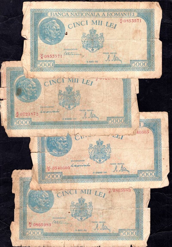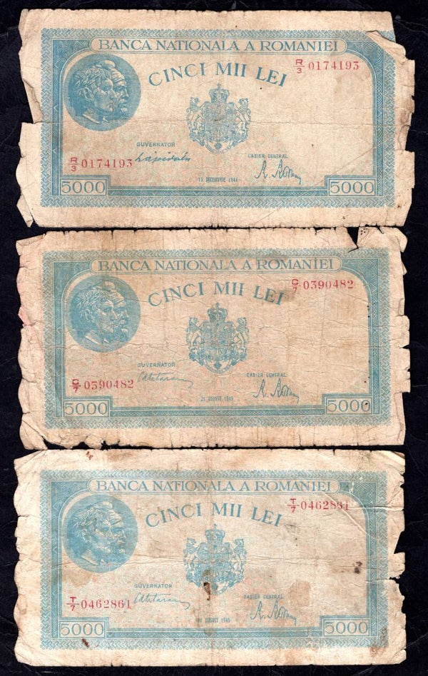 Romania, 13 banknotes, 1940s. Poor.