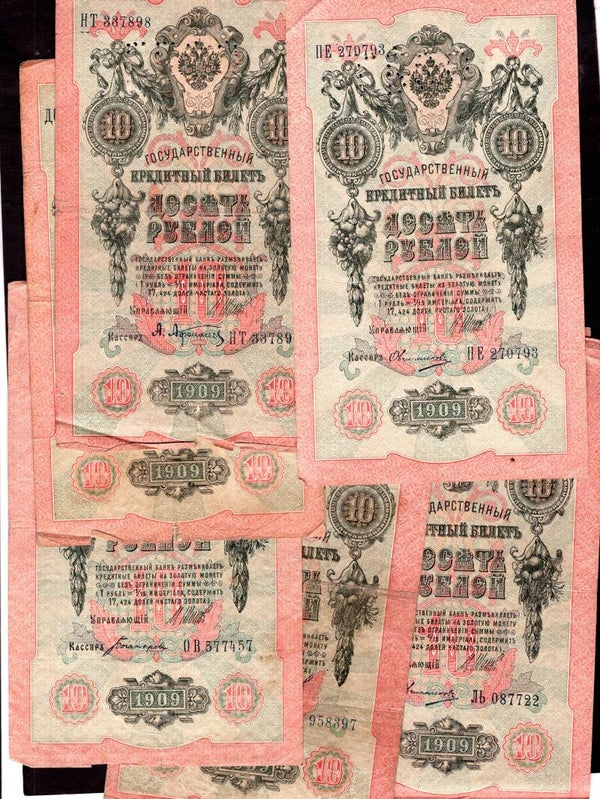 Russia. 20 x 5 Roubles & 7 x 10 Roubles all Shipov sig. DY23324