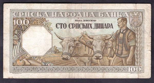 Serbia. 100 Dinara 1943 Good Fine. dy23689