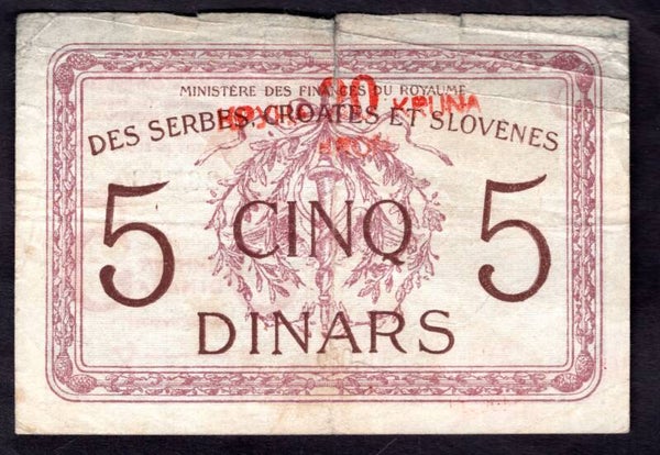 Yugoslavia. 5 Dinara/20 Kron C.1920s Fine. dy20271