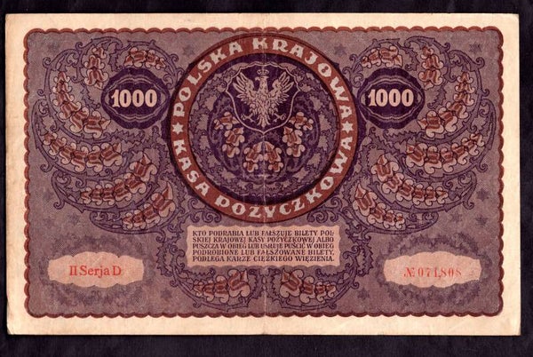 Poland. 1,000 Marek 071,808 Crisp NVF. dy23718
