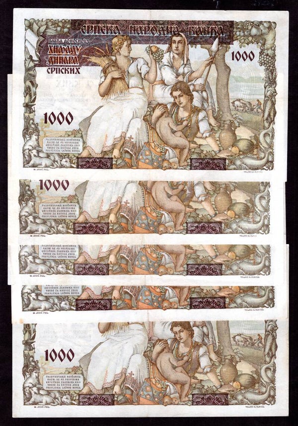 Serbia. 5 x 1,000 Dinara 1941. Ave = VF.