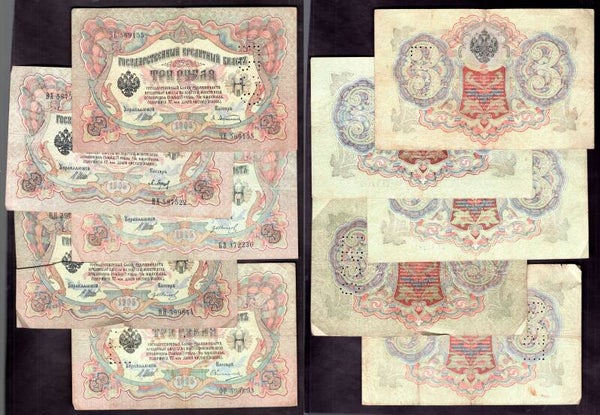 Rusia. 10 x 3 Roubles Shipov signature mixed grades. dy22868
