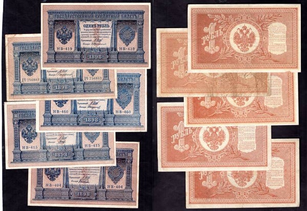 Russia. 10 x 1 Rouble Shipov sig. 1898 mixed grades. dy22866