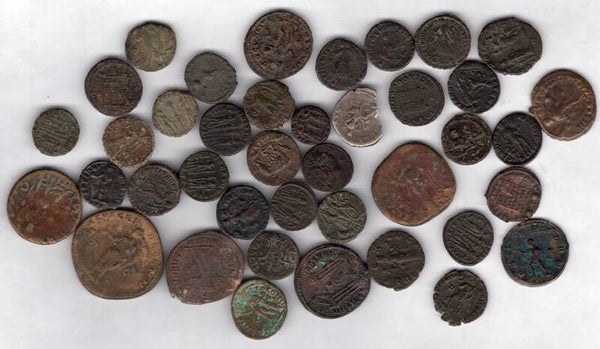 40 Roman Coins. All with varying degrees of problems, verdigris, chipping, various accretions.