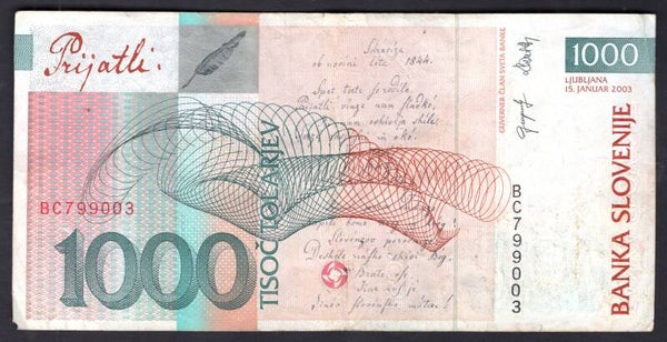 Slovenia. 1,000 Tolarjev 15-1-2003 F-VF. dy11517