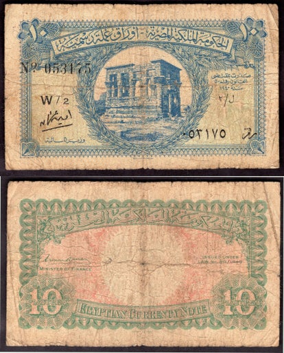 Egypt. 10 Piastres Law 1940. W/9 951372. GF+. DY19150