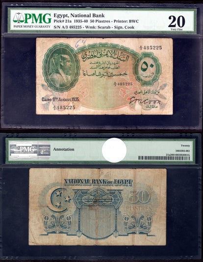 Egypt, 50 Piastres, 1935, 485225. 20 Very Fine. W6024