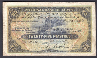 Egypt. 25 Piastres 5-7-1950 L/106 (WPM 10d).