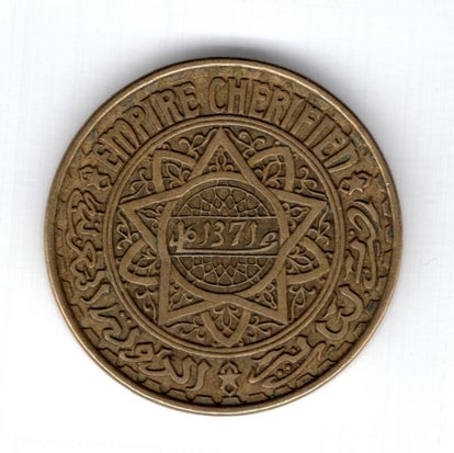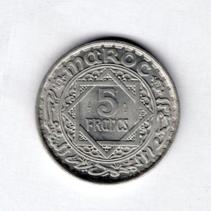 Morocco. 5 Francs. A.H.1370/A.D. C. 1950.