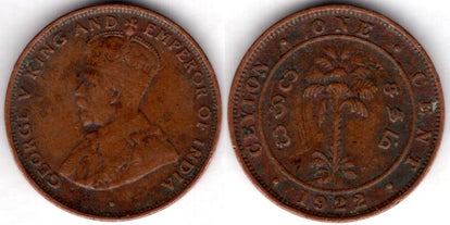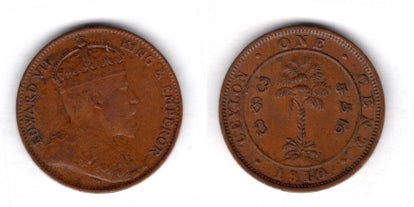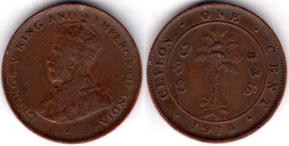 Ceylon (2). 1/2 Cent 1914 & Cent 1870.