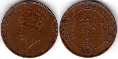 Ceylon, 1 Cent 1942 (2). High grade examples of each flan thickness.