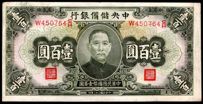 China. Central Reserve Bank. 100 Yuan 1942 (WPM J14a) N230981Q/F