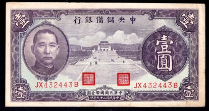 China. Central Reserve Bank. Yuan 1940 (WPM J9a) JX432443B VF. DY20332