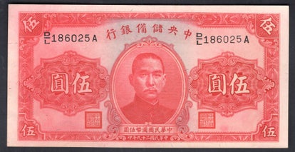 China. Central Reserve Bank. Five Yuan 1940 (WPM J10e) L/W 610725W