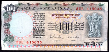 India. 100 Rupees 5UE 415035. Crisp GF.