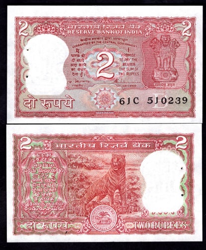 India, 2 rupees x 5, Singh signature (1984-85), 31V 249702-249706.