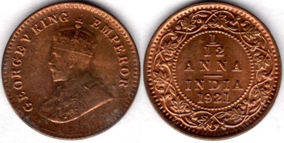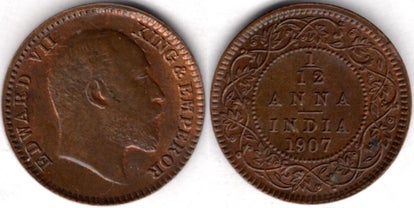 (TP). India. 1/12th Anna 1921 x 58. Lustrous High Grade Group. DY21763