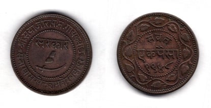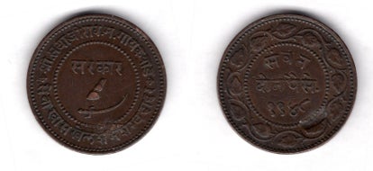 India. Baroda, 2 Paisa 1947 (A.D.1890). DY15820